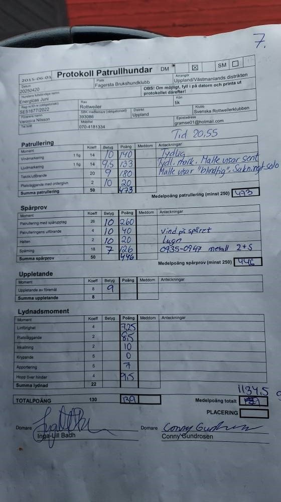 Snyggt spårupptag, hon fick beröm av domare, metall föremål missade vi. Gick fort
